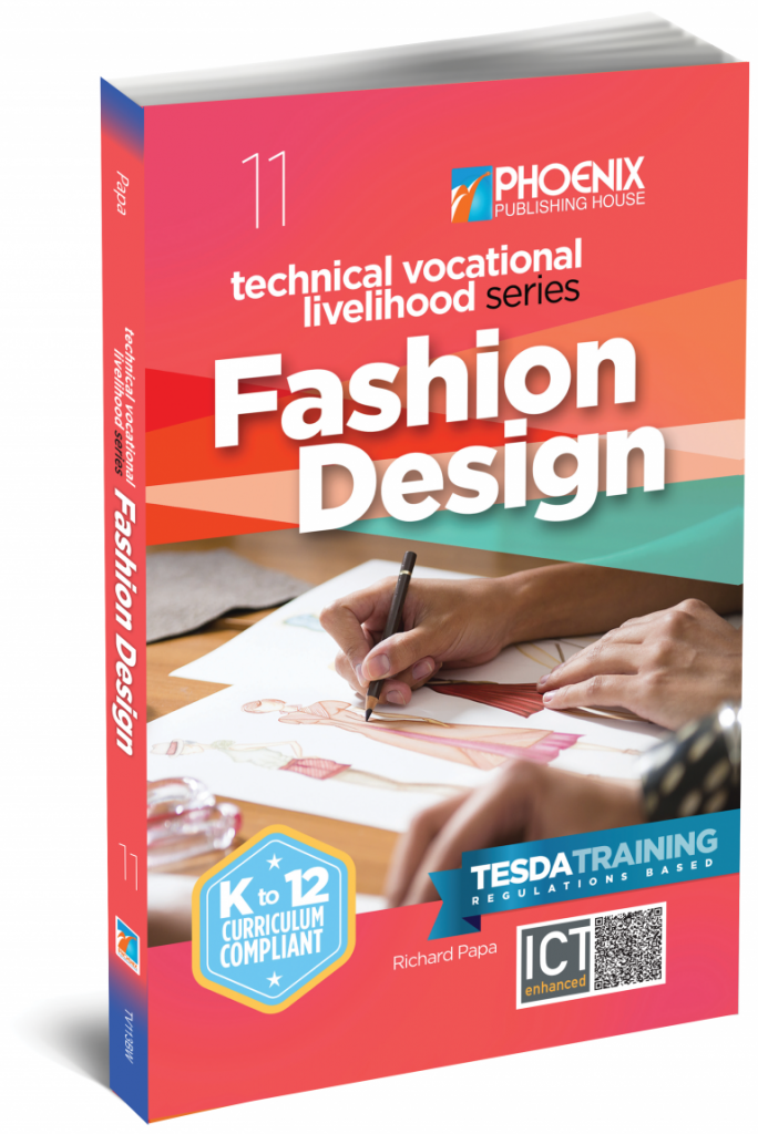 The book highlights lessons on creating garment design, calculating and procuring garment materials, and supervising garment prototype preparation and mass production. Fashion Design 11 leads to NC III.