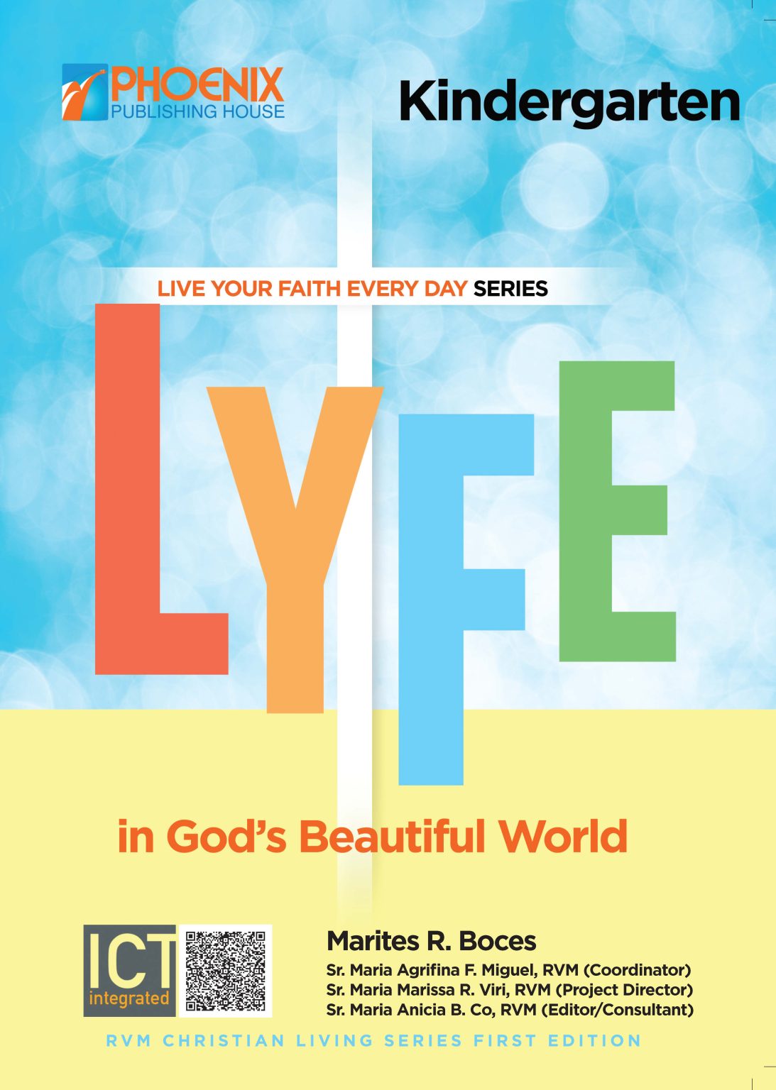 Live Your Faith Every Day (LYFE) is the new Religious of the Virgin Mary (RVM) K–12 Christian Living Series designed to help our young people grow toward maturity of faith in Jesus Christ from Kindergarten to Senior High School. This new Christian Living worktext series is part of the RVM Education Ministry Commission’s continuing response to the call of the Church to renewed evangelization.